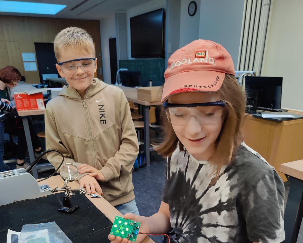 Der Verein der Freunde des Gymnasiums haben der Schule neue Lötkästen spendiert. Im „Bastelraum“ der NuT-Fächer dürfen die Schüler der MINT AG das Löten ausprobieren. Man sieht Ihnen an, welchen Spaß sie dabei haben.