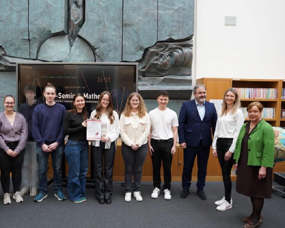 Einen eindrucksvollen Beweis des Könnens unserer Schüler in unsere Schule lieferte das P-Seminar Mathematik. Sie gewannen mit dem Thema Erstellung mathematischer Erklärvideos den Preis des Ministeriums für Unterricht und Kultus für Seminararbeiten.